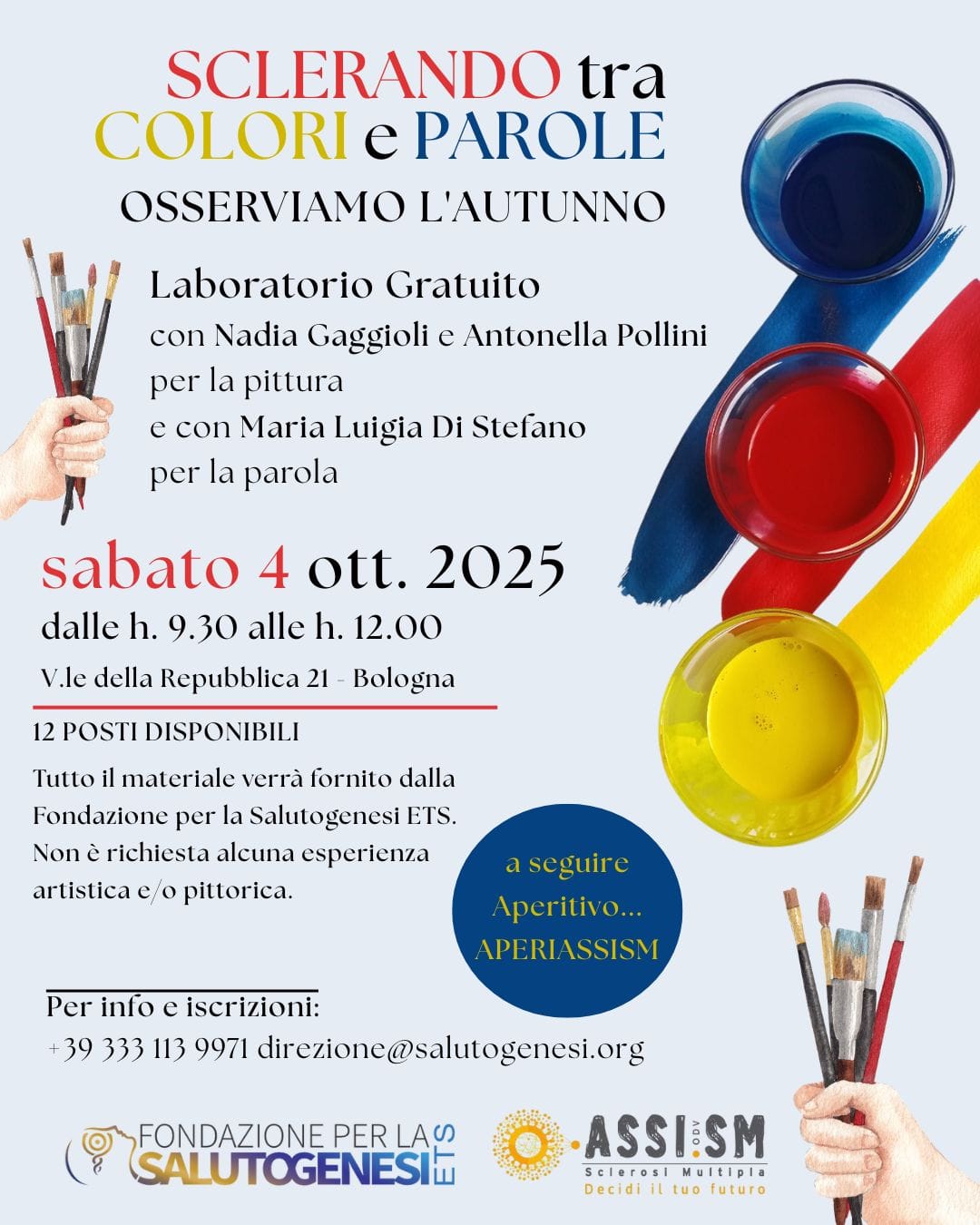 Sabato 4 ottobre 2025, dalle 9.30 alle 12.00, ti aspettiamo a Bologna (Viale della Repubblica 21) per un’esperienza creativa e aperta a tutti, dove pittura e parola si incontrano per raccontare l’autunno.